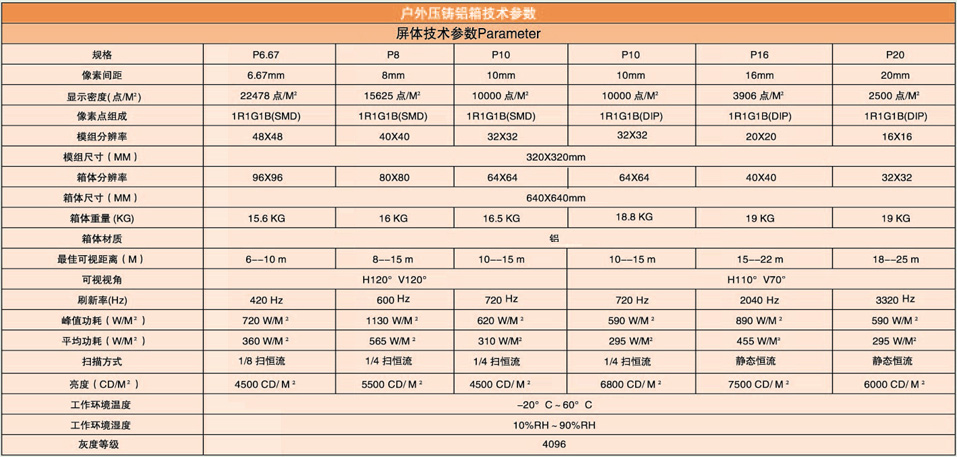 1、適臺(tái)戶外固定安裝或租賃安裝,觀看距離適中。